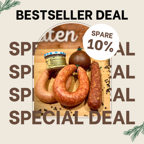 1: Heute haben wir etwas ganz besonderes für Dich. Du erhälst in der heutigen Aktion: –10 % auf alle Produkte aus der Kategorie Bestseller im Wurstversand.