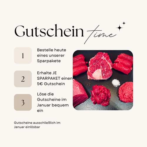 2: Heutige Aktion: Zu jedem gekauften Sparpaket gibt es einen 5 €-Gutschein für die nächste Bestellung im Januar..