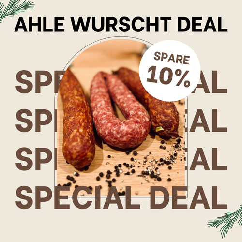 7: Heute haben wir etwas ganz besonderes für Dich. Du erhälst –10 % auf alle Produkte aus der Kategorie Ahle Wurscht g.g.A.